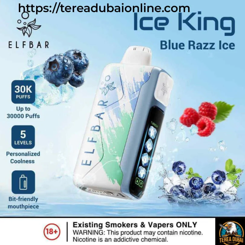 - أما إذا كنت تعشق البرودة القوية (Ice) التي تضرب في الرأس وما يهمك تغير الجهاز كل 3 أسابيع، فخلك مع Elfbar Ice King 30000.