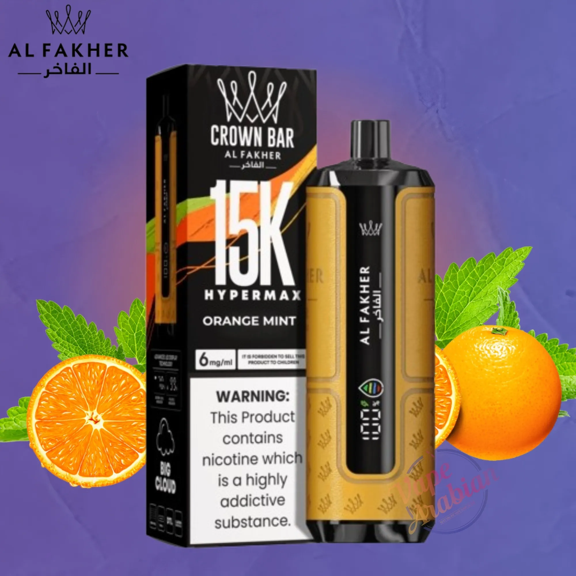 ألفاخر كراون بار هايبرماكس (Al Fakher Crown Bar Hypermax) - 15000 سحبة (Puffs) فيب (Vape) للاستخدام مرة واحدة