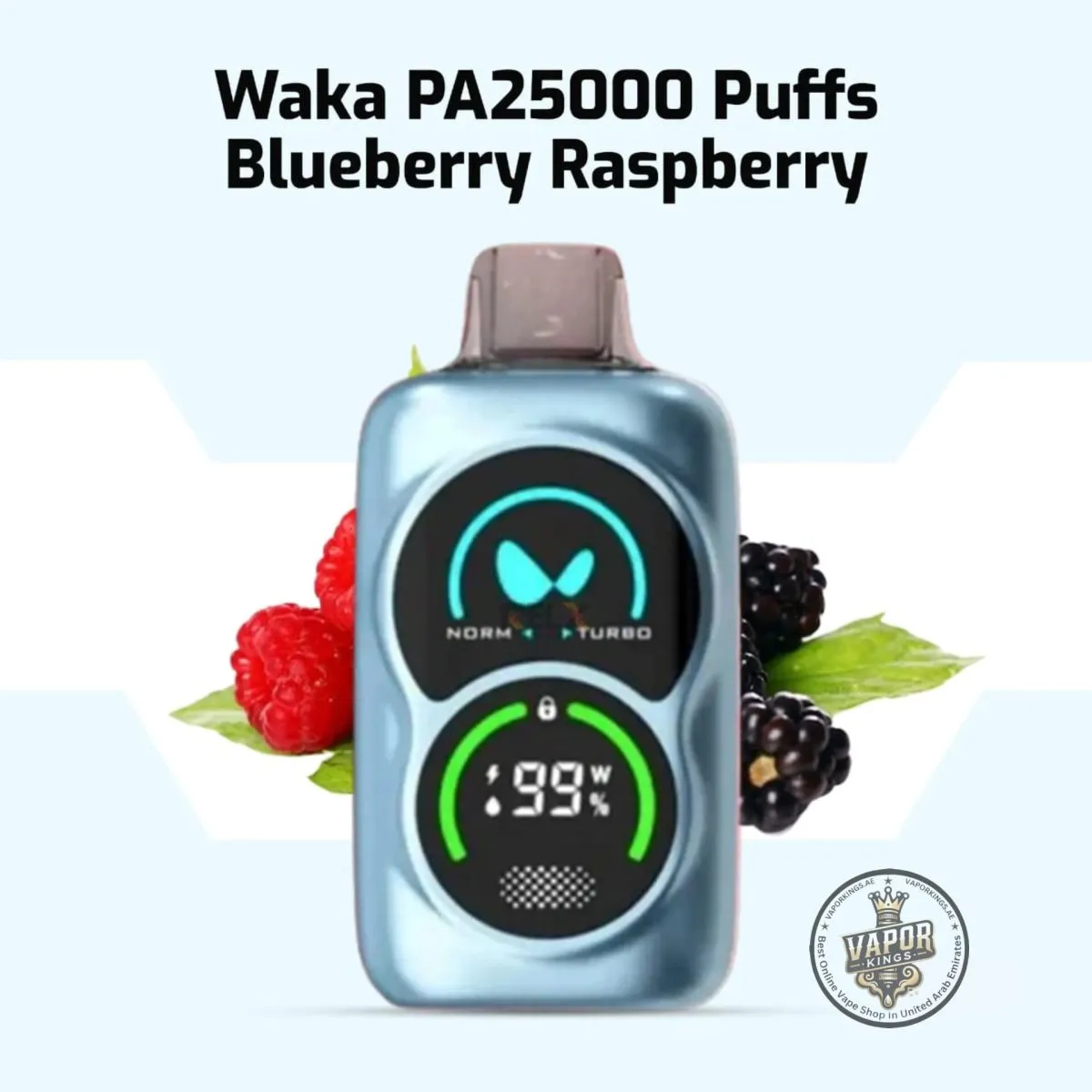 Waka PA25000 بسعة 22 مل، 25000 جولة، بطارية قابلة للشحن 800 مللي أمبير، استنشاق فموي MTL، ملف شبكي، يقدم 12 نكهة متنوعة ومنعشة، شاشة ذكية وتصميم عصري للاستخدام الطويل
